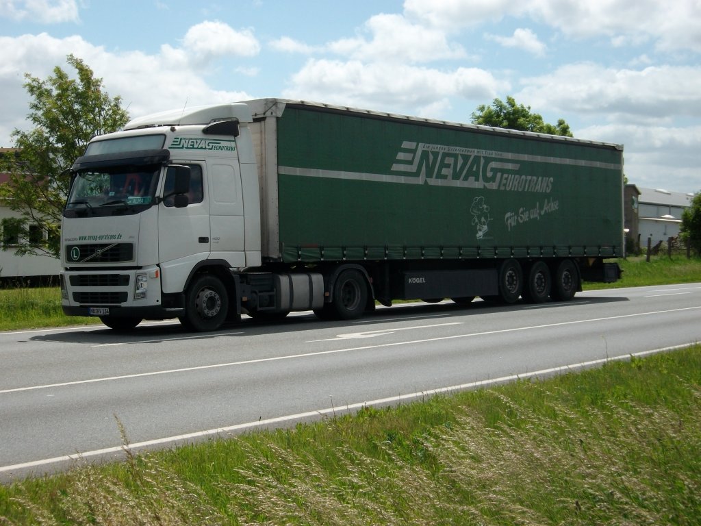 VOLVO-Sattelzug von einer Neubrandenburger Spedition auf der B96 bei Bergen/Rügen.