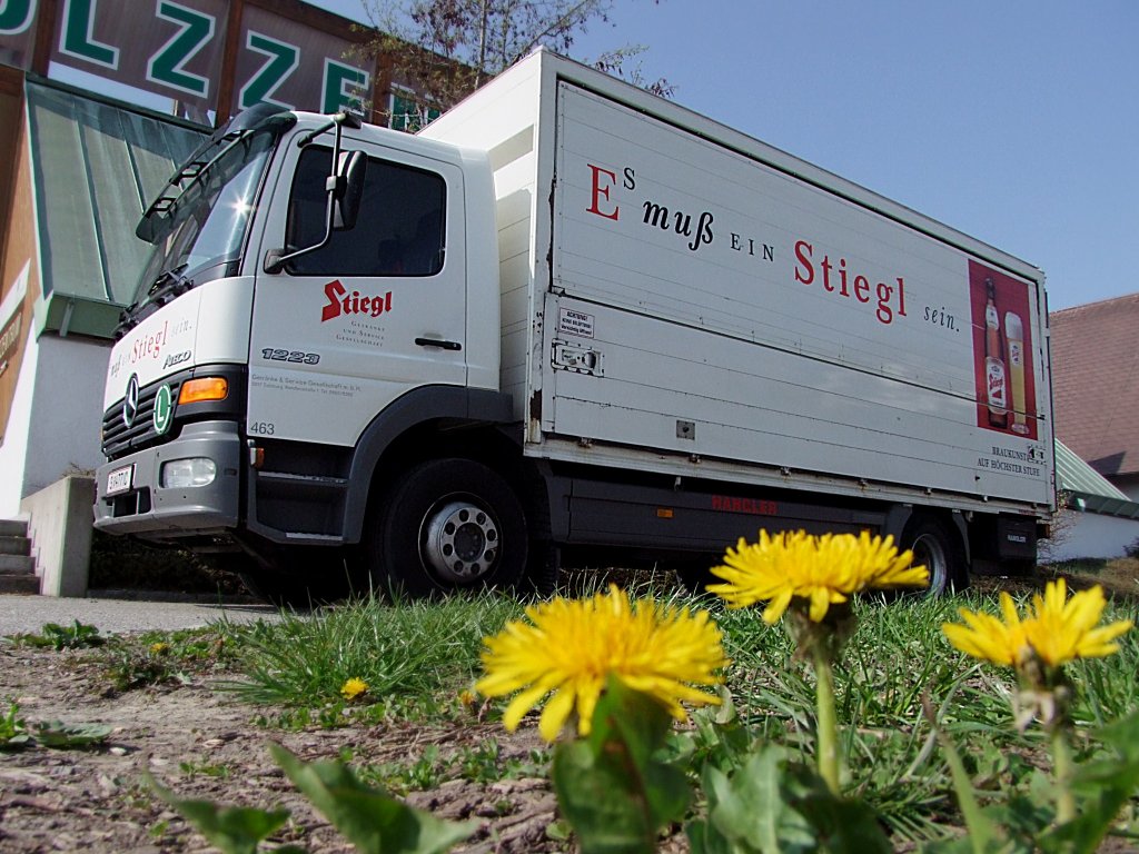 ATEGO-1223 der Stiegl-Brauerei im Zustelldienst in Ried i.I.;100425