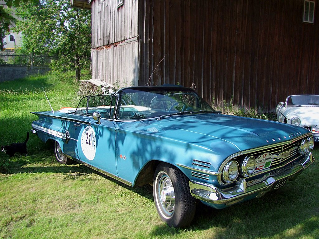 Chevrolet mit der Startnr.21 anlässlich der "15e-Vierlanden-Veteran-Rally2010" wird von der Katze mit einem gebührenden Strahl in Waldzell empfangen;100629