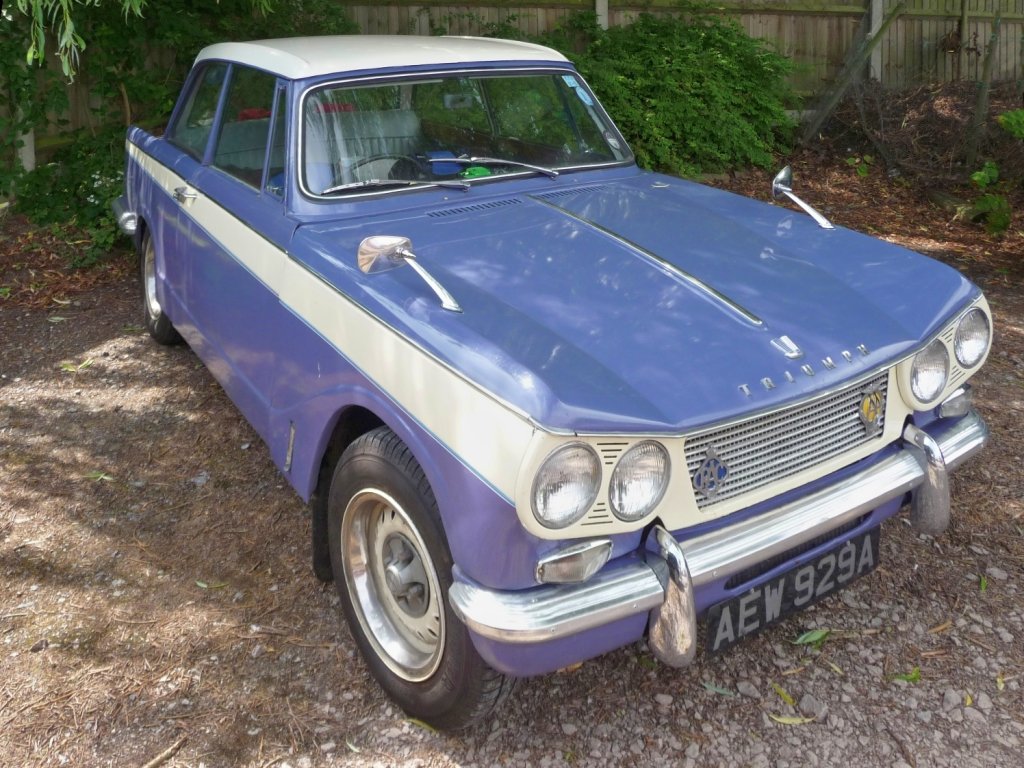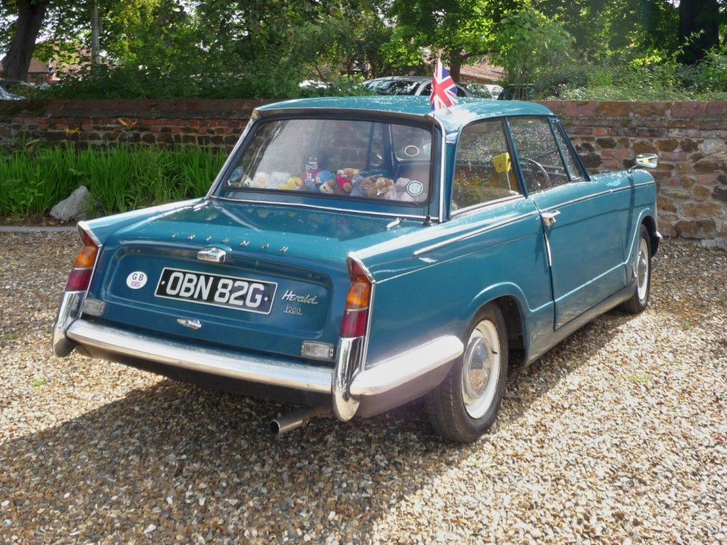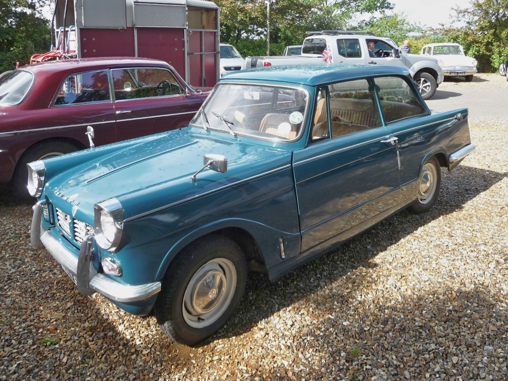 Ein Triumph Herald 1200 auf einem Hotelparkplatz im King's Lynn, Norfolk, England.