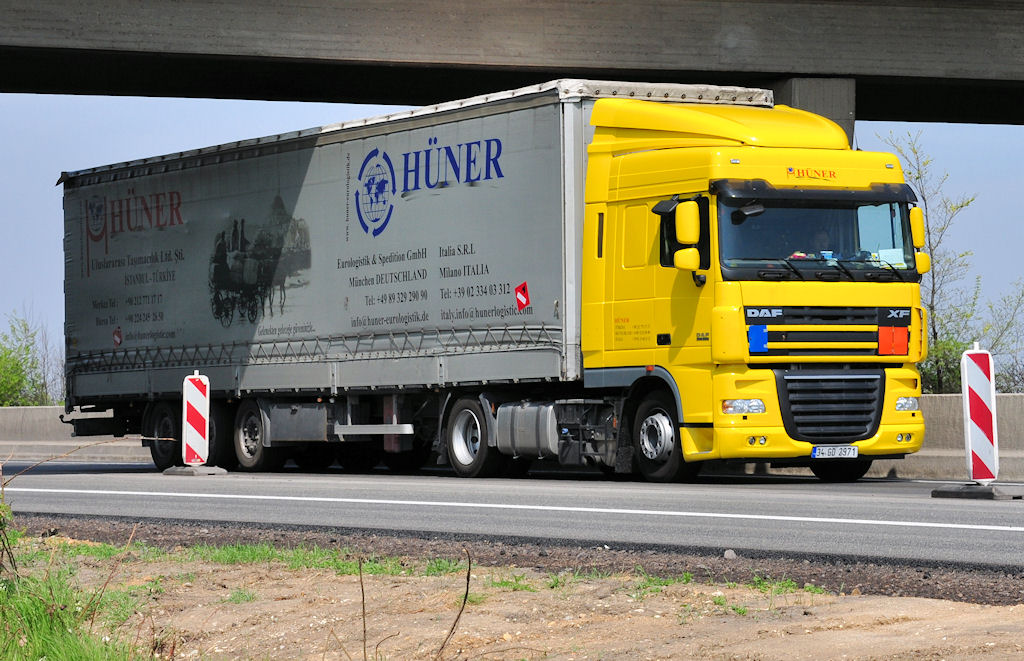 DAF XF Pritsche "Eurologistik und Spedition Hüner" auf der A61 bei Heimerzheim 28.04.2010