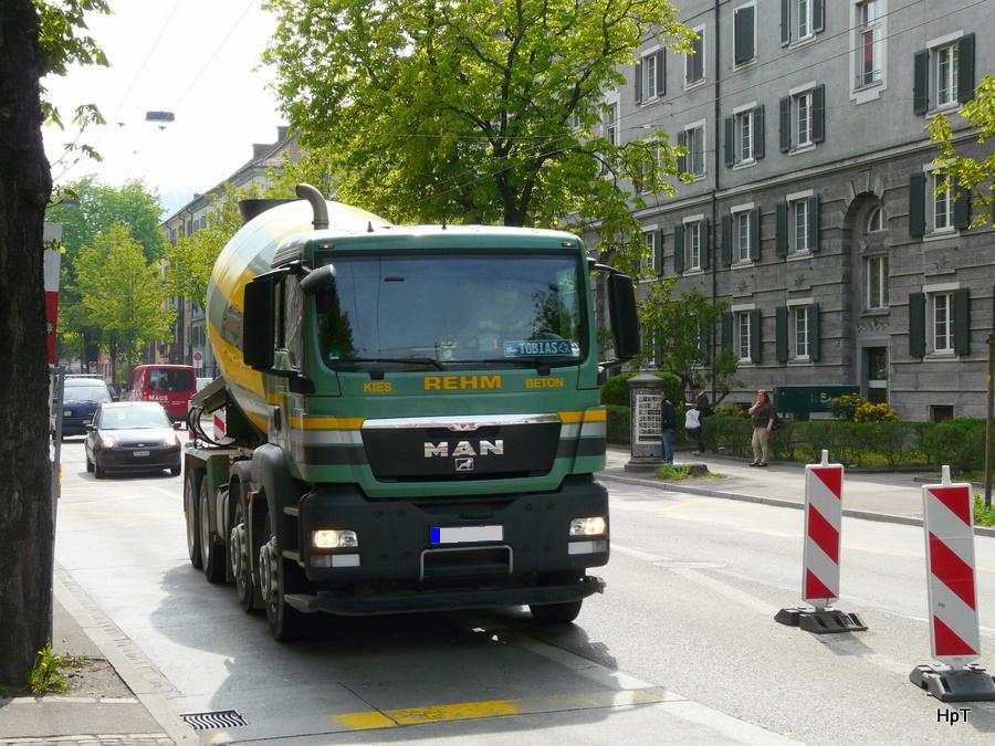 MAN TGA 35.350 der Firma LEINWEBER steht auf einer Baustelle in 36088 Hünfeld, Mai 2010