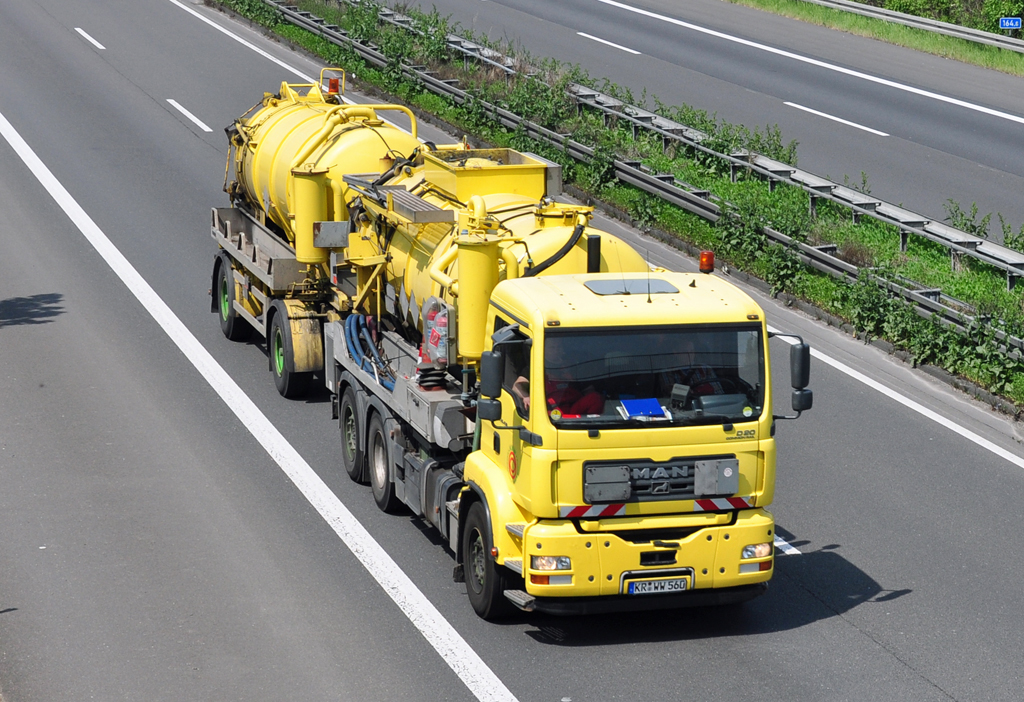 MAN D20 Hängerzug-Entsorgungsfahrzeug auf der A61 bei Rheinbach - 25.05.2010