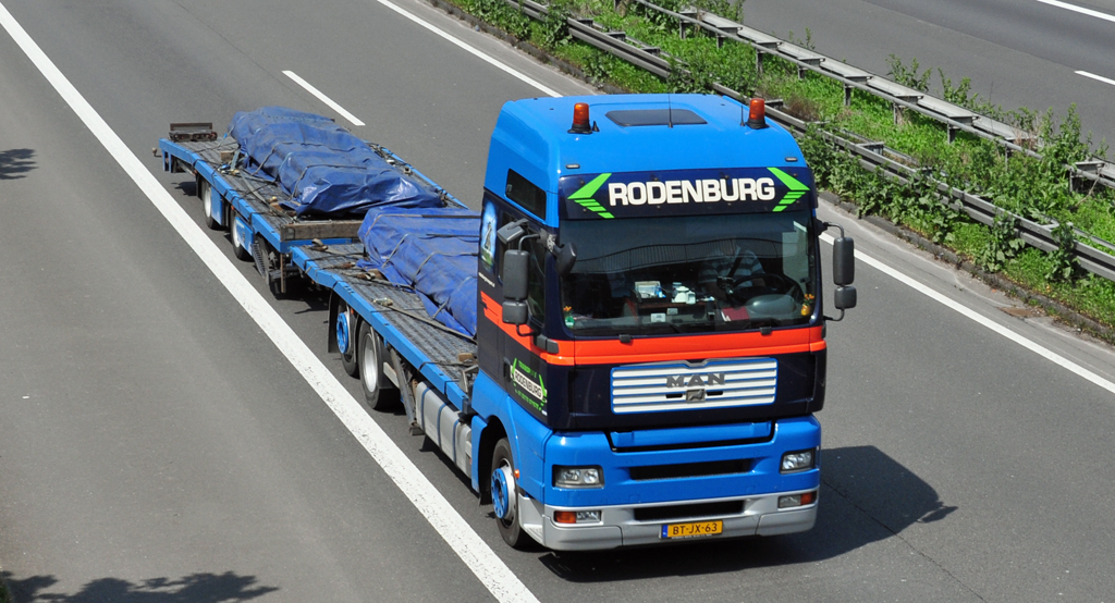 MAN Tieflader mit Hänger "Rodenburg" auf der A61 bei Rheinbach 25.05.2010