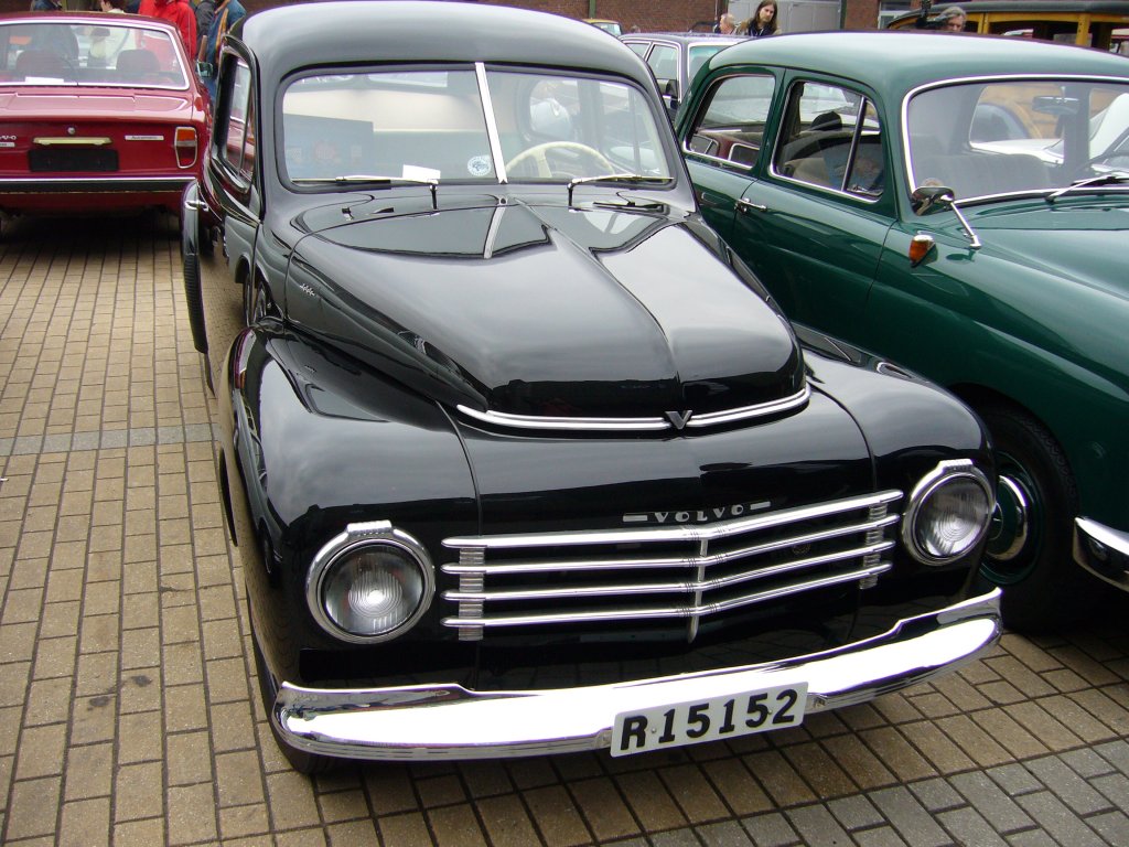 Volvo PV 444. 1947 - 1958. PV stand für person vagn und 444 für 4 Zylinder, 40 PS und 4 Sitze. Außengelände der Techno Classica.