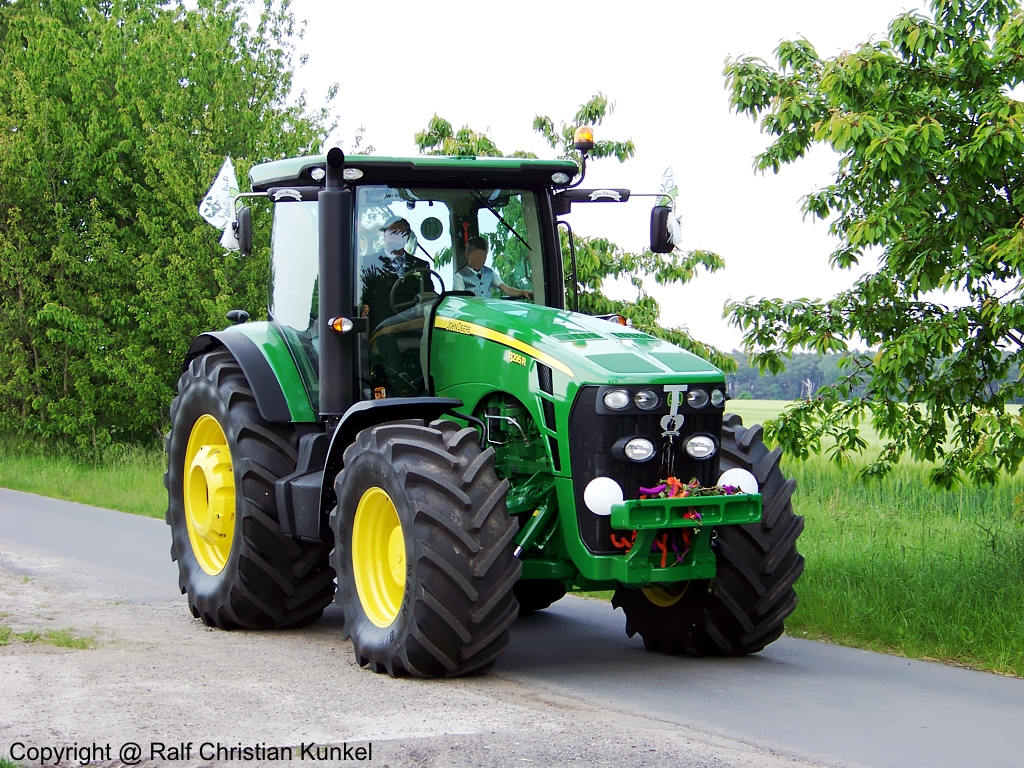 Zweckentfremdet - ein großer John Deere 8295R als Hochzeitskutsche - das ist doch mal was - bekommt man so schnell auch nicht wieder vor die Linse - fotografiert am 29.05.2010 im Landkreis Teltow-Fläming/ Land Brandenburg - Copyright @ Ralf Christian Kunkel