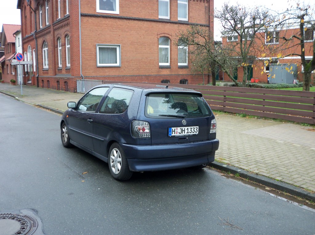 Blauer VW-Polo mit besonderen Heckleuten in Lehrte in November 10.