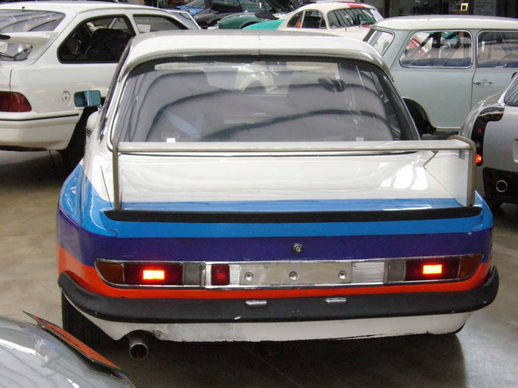 Heckansicht eines BMW 3.0 CSL. 1971 - 1975. Diese E9 Coupes wurden in Zusammenarbeit mit Alpina zur Homologation im Tourenwagensport produziert. Meilenwerk Düsseldorf.