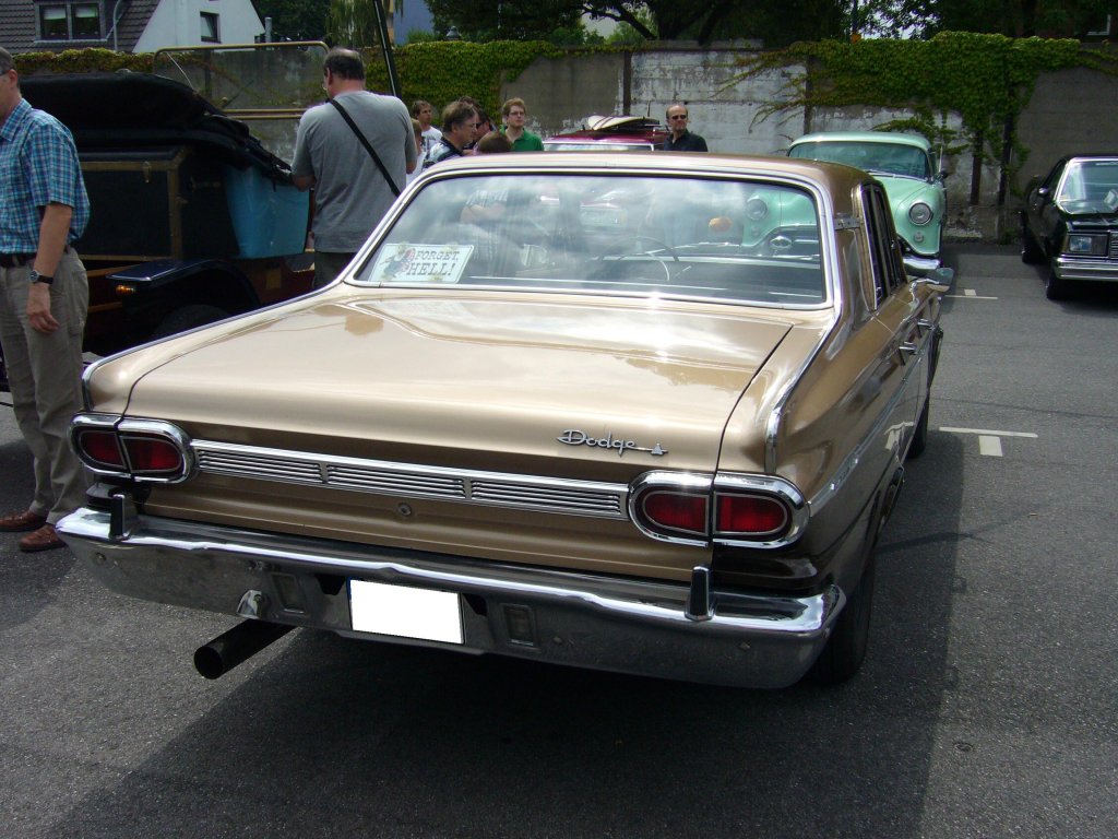 Heckansicht eines 1966´er Dodge Dart. Der Dart war mit zwei 6-Zylinder-Reihenmotoren mit 2.8 und 3.7 Liter Hubraum, sowie einem 4.5 Liter V8-Motor lieferbar. 1966 wurden ca. 83.600 Dartmodelle produziert. US-Car-Treffen am Düsseldorfer Meilenwerk.