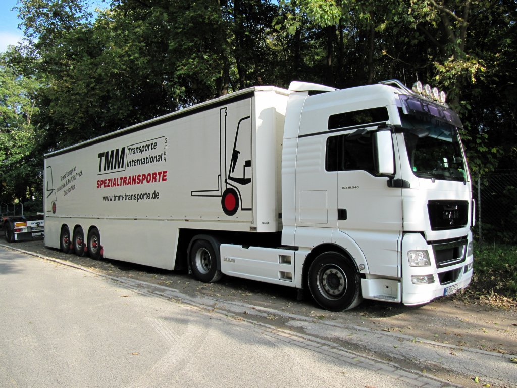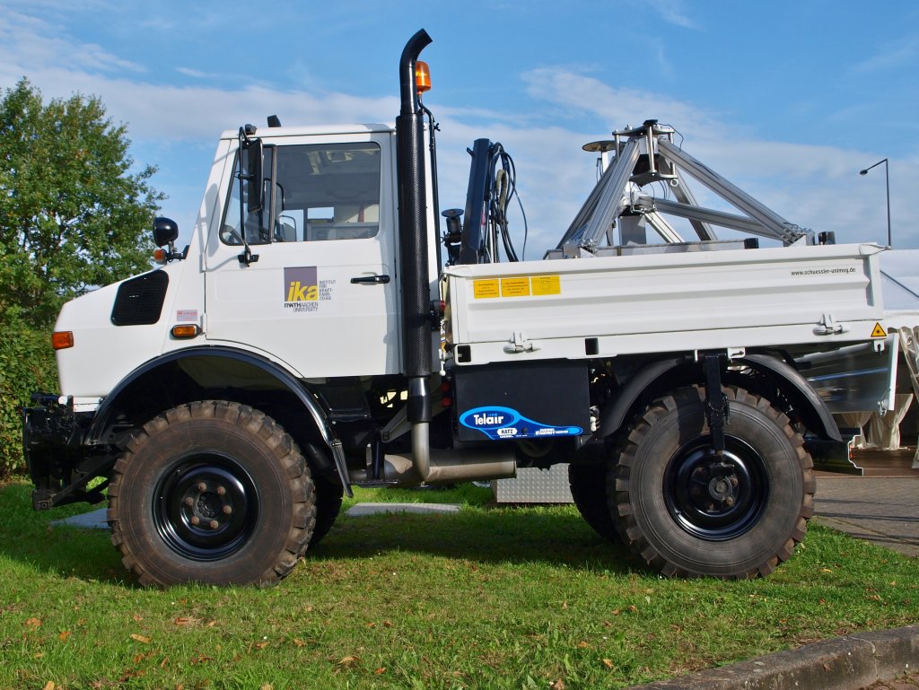 Lust auf Technik? Dieser Actros wirbt am 01.10.2010 mit seinem Auflieger für ein Studium bei der RWTH Aachen beim IKA (Institut für Kraftfahrzeuge) am Seffenter Weg in Aachen.