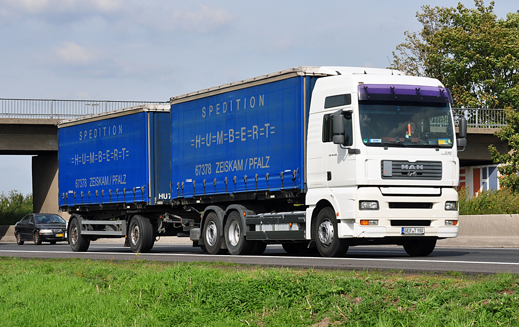 MAN D20 TGA 25.430 "Spedition Humbert" auf der A61 bei Miel - 23.09.2010