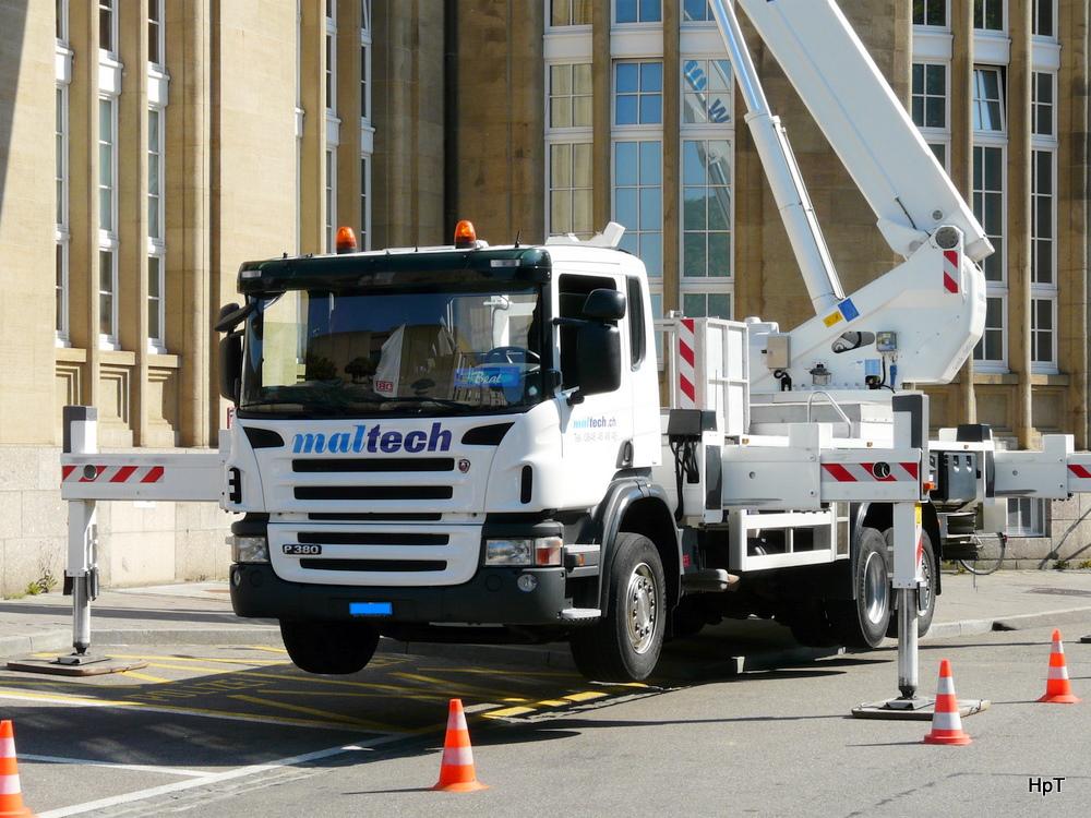 Scania P 340 Getränketransporter unterwegs in der Stadt Lausanne am 09.09.2010