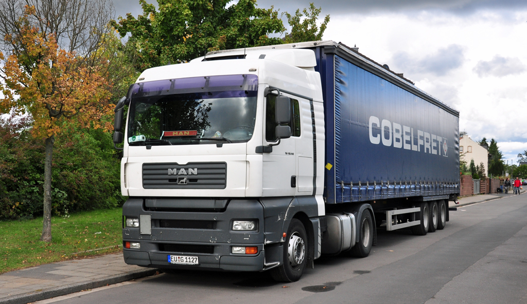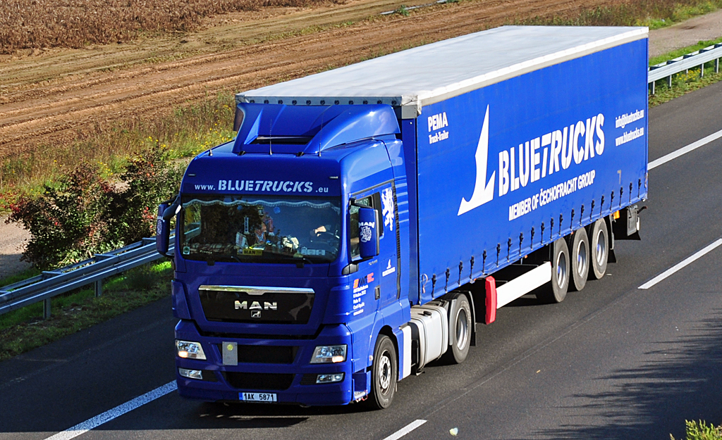 MAN Pritsche "Blue Trucks" auf der A61 bei Miel - 04.10.2010