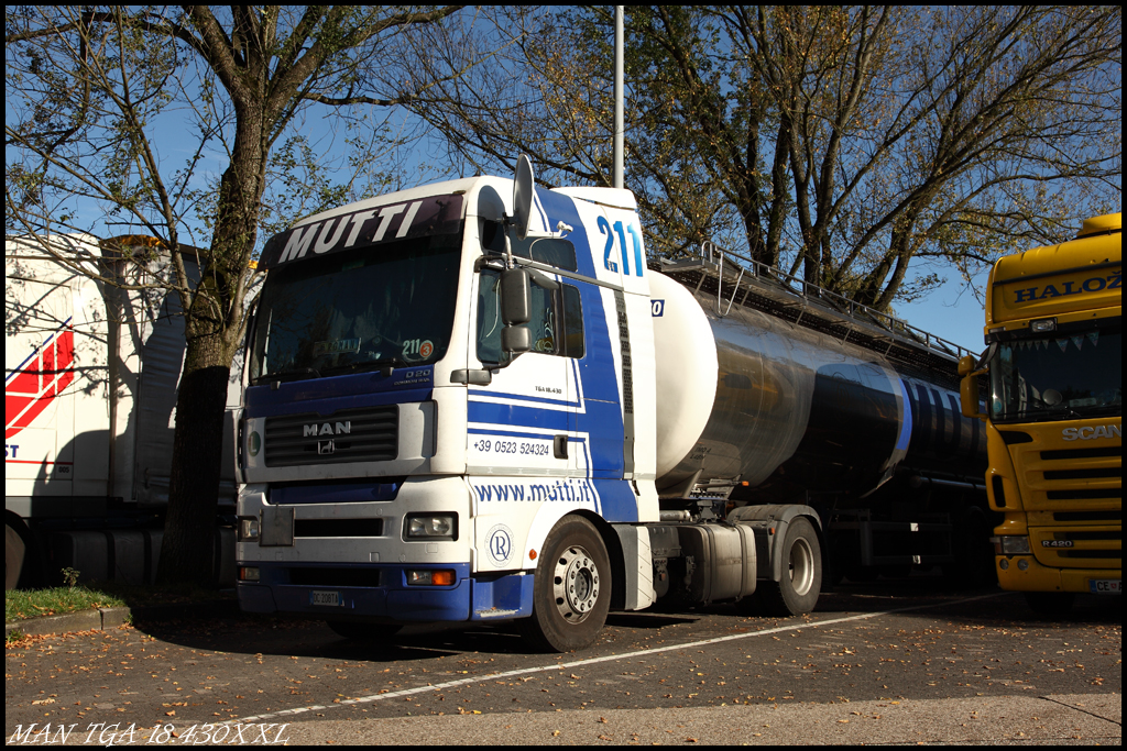 MAN TGA 18.430XXL von MUTTI S.P.A. aus Italien. Das Unternehmen hat sich auf den Transport von flüssigen Lebensmitteln und Chemischen Produkten spezialisiert. Eingesetzt werden bis zu 250 Lkw´s dazu kommen nochmal 500 Tankauflieger.