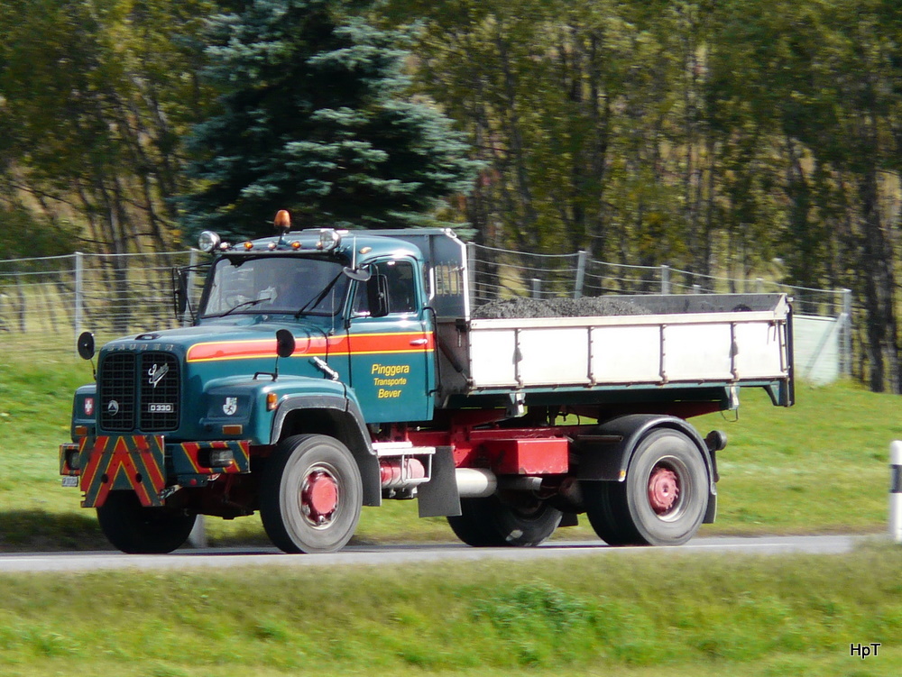 Oldtierm Saurer D330 Kipper voll in Fahrt unterwegs bei Bever am 16.09.2010