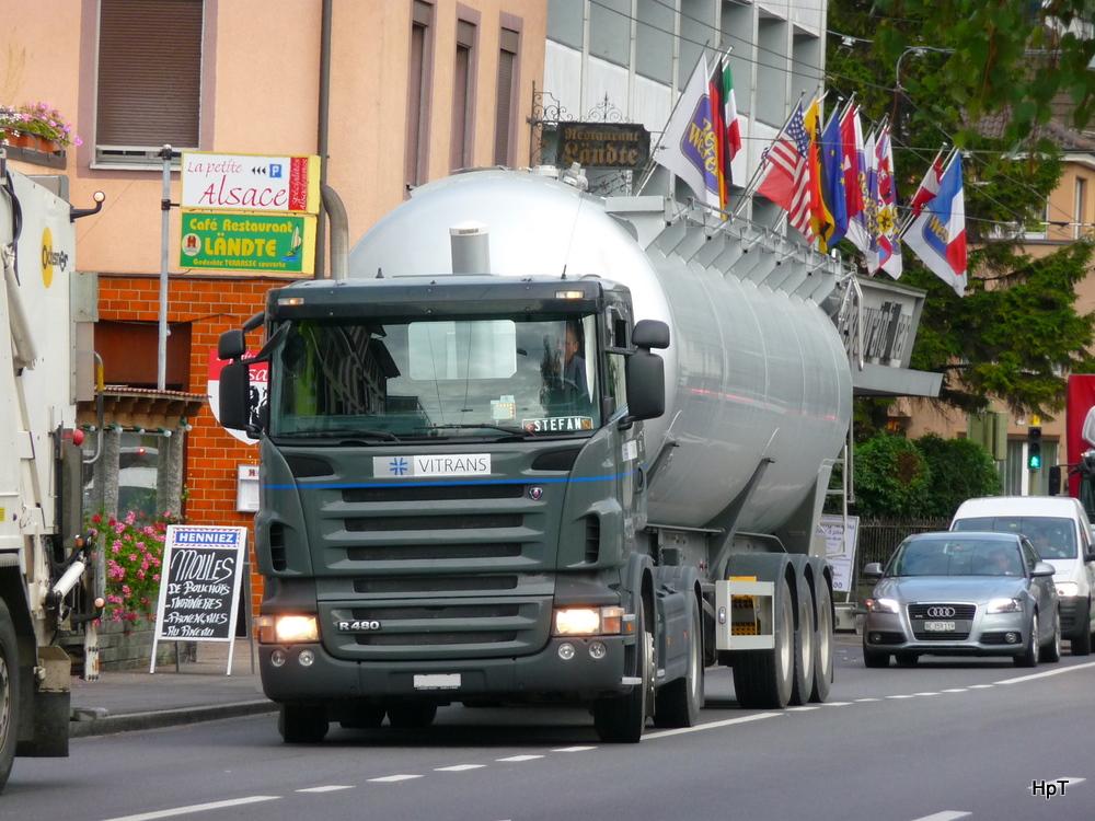 Scania R 480 Sattelschlepper unterwegs in der Stadt Biel am 10.09.2010