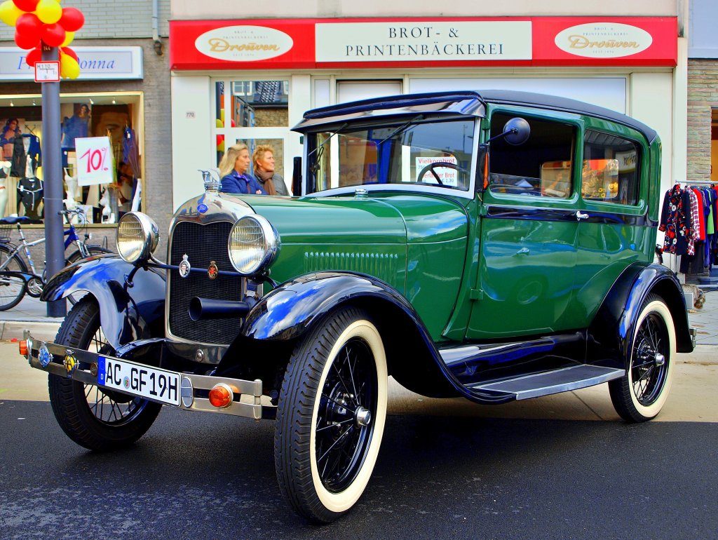 Ford A Modell Baujahr 1928 am 24.10.2010 bei einem Strassenfest in Aachen Brand. Kleines Rätsel, auf der Seite des Oldtimer spiegelt sich ein..., na, wer erkennt es?