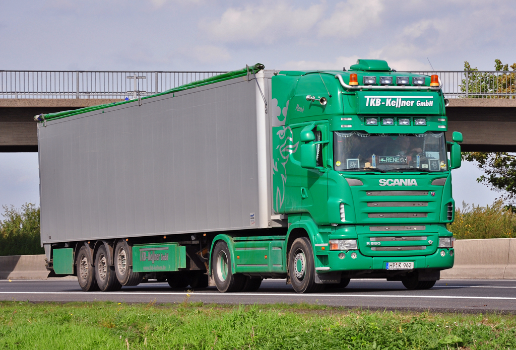 Scania R 580 "TKB Kellner" auf der A61 bei Miel 23.09.2010