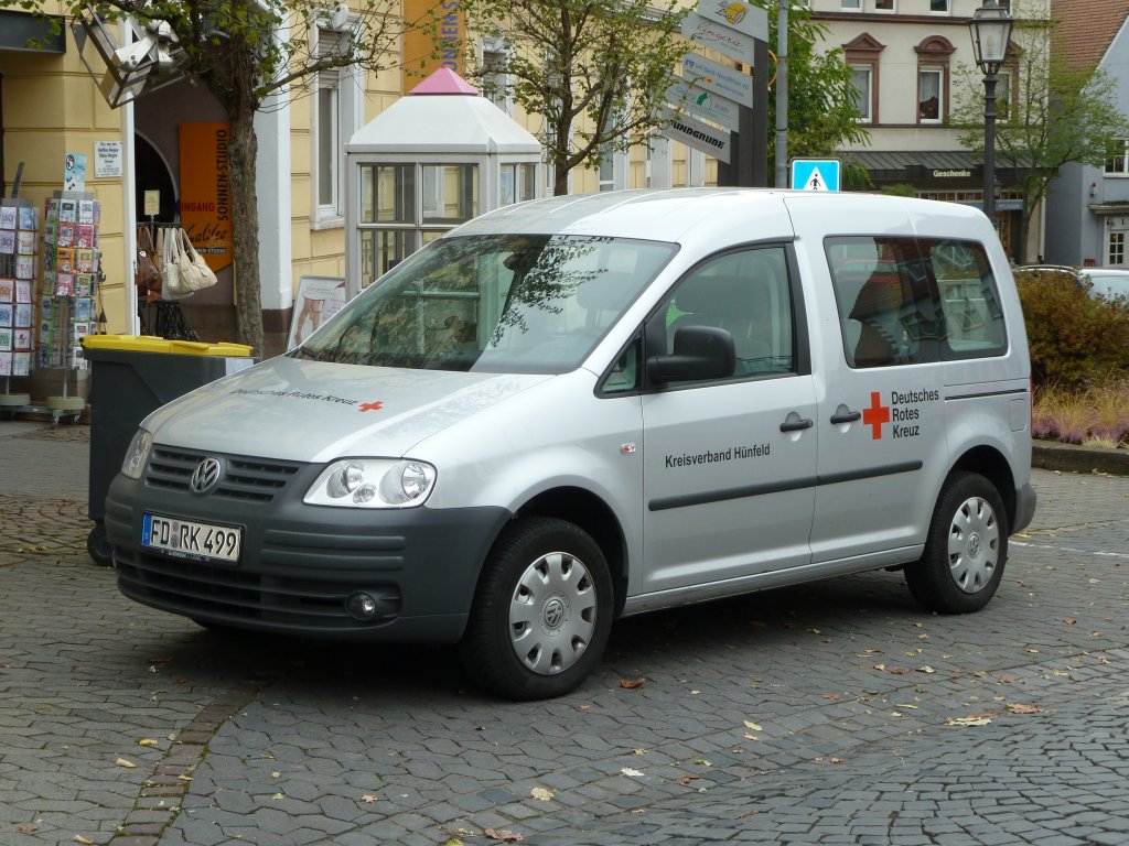VW Caddy des DRK-Kreisverbandes Hünfeld steht in der Hünfelder Innenstadt, Oktober 2010