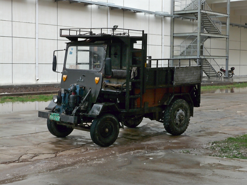 Dieser chinesische Kleintransporter sieht aus wie ein absolutes Unikum, aber es fahren nicht wenige davon herum. Es scheint sich also um eine Serienbauart zu handeln, auch wenn sie äußerst spartanisch ausgeführt wurde.