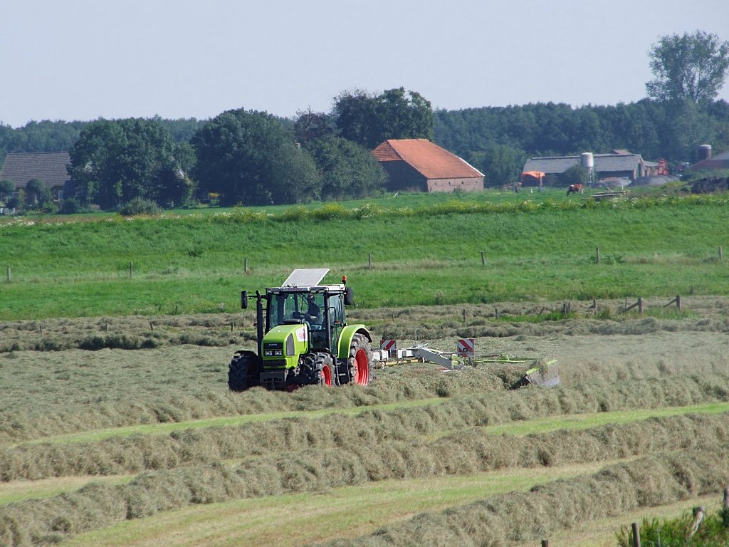 CLAAS arbeitet mit einem Heuschwader in der Nähe von Dieren an der Ijssel;100906