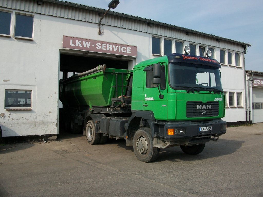 MAN-Kipper am 24.September 2010 mit Reifenproblemen an einer Reifenstation in Bergen/Rügen.