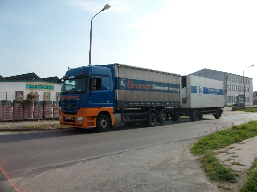Mercedes-Hängerzug von Rügens größter Spedition am 24.September 2010 im Industriegelände von Bergen/Rügen.