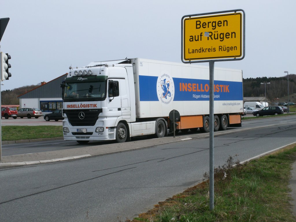 Dieser Mercedessattelzug verließ am 11.April 2011 Bergen/Rügen.