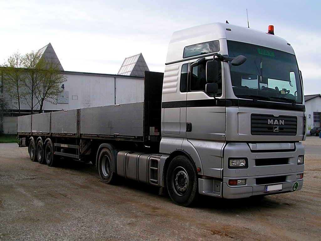 MAN mit Pritschensattelauflieger vor der Rieder Messehalle Nr.4110406