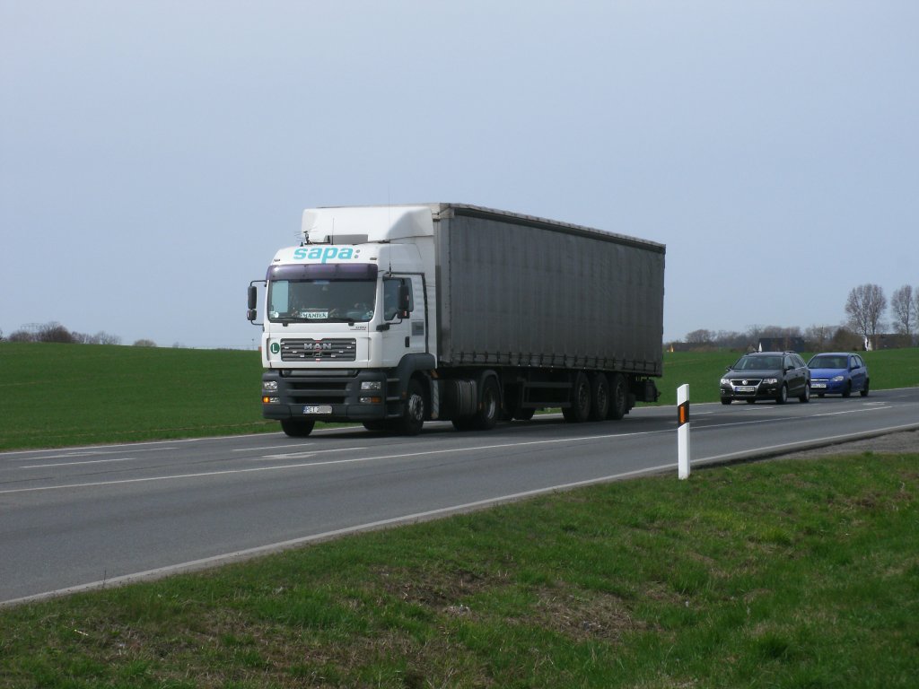 MAN-Sattelzug unterwegs am 11.April 2011 bei Bergen/Rügen.