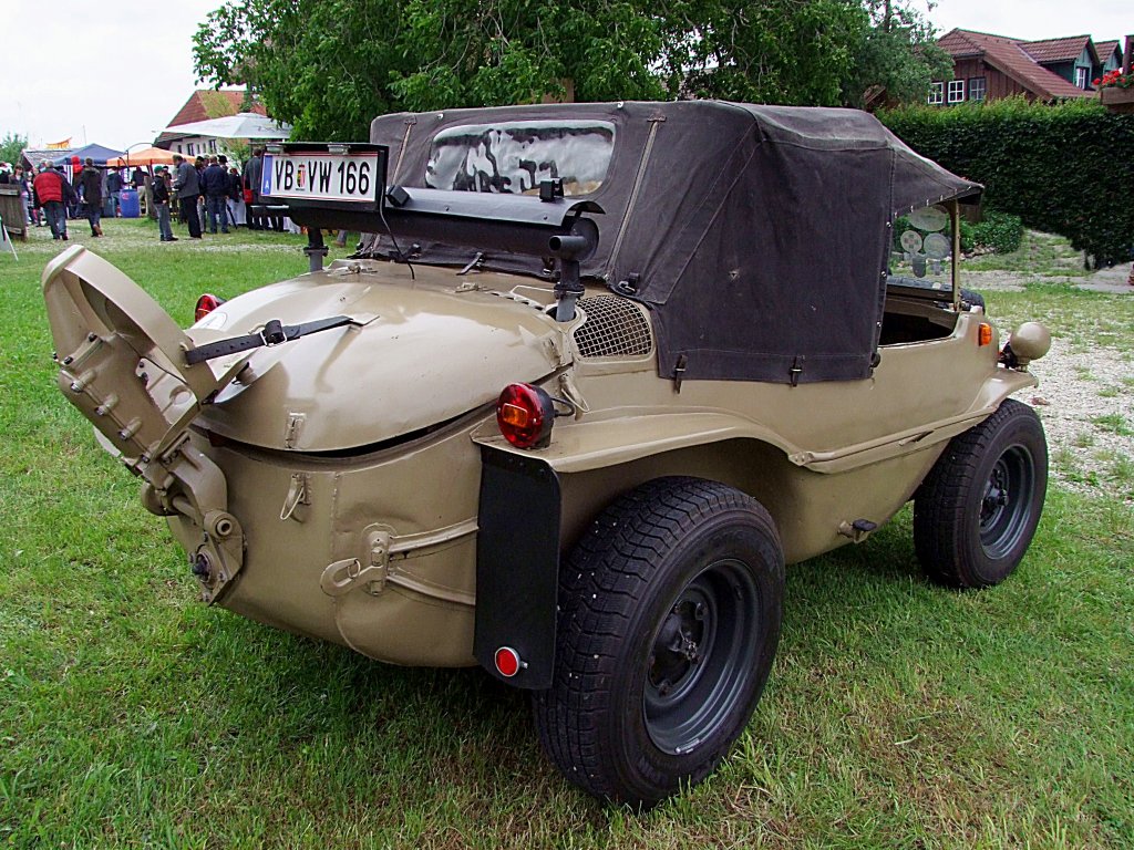 VW-166, Schwimmwagen (1131ccm; 30PS; Bj.1943) stellt bei einer Oldtimerausstellung sein Hinterteil zur Schau; 110703