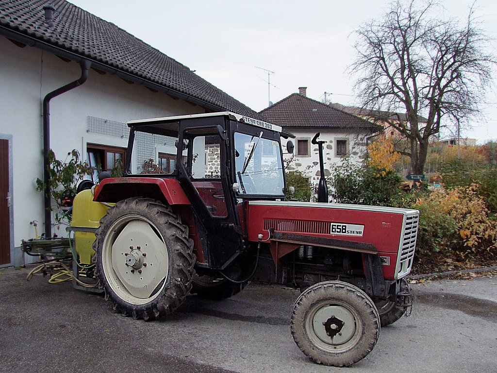 Same Solaris 45, italienischer Schmalspurtraktor mit angebautem hydraulischem Frontlader, Allradantrieb und 45PS, Feb.2011