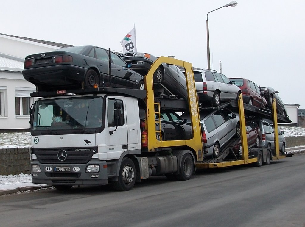 Die Einkaufstour für den litauschen Mercedes-Autotransporter hatte sich am 31.Januar 2011 gelohnt.Hier stand der LKW im Industriegebiet von Bergen/Rügen.