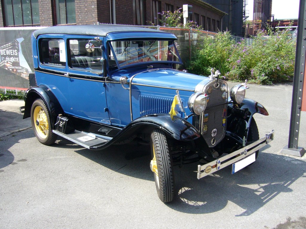 Ford A Tudor de Luxe. 1928 - 1931. Das Modell A war der Nachfolger des legendären T-Modells. Dieses Fahrzeug war in acht Karosserievarianten und vier Farben lieferbar. Der 3.3l 4-Zylinderreihenmotor leistete 40 PS. Dieses ca 4.3 Millionen mal gebaute Volumenmodell wurde auch in der Sowjetunion als GAZ in Lizenz produziert. Oldtimertreffen Kokerei Zollverein am 01.08.2010.