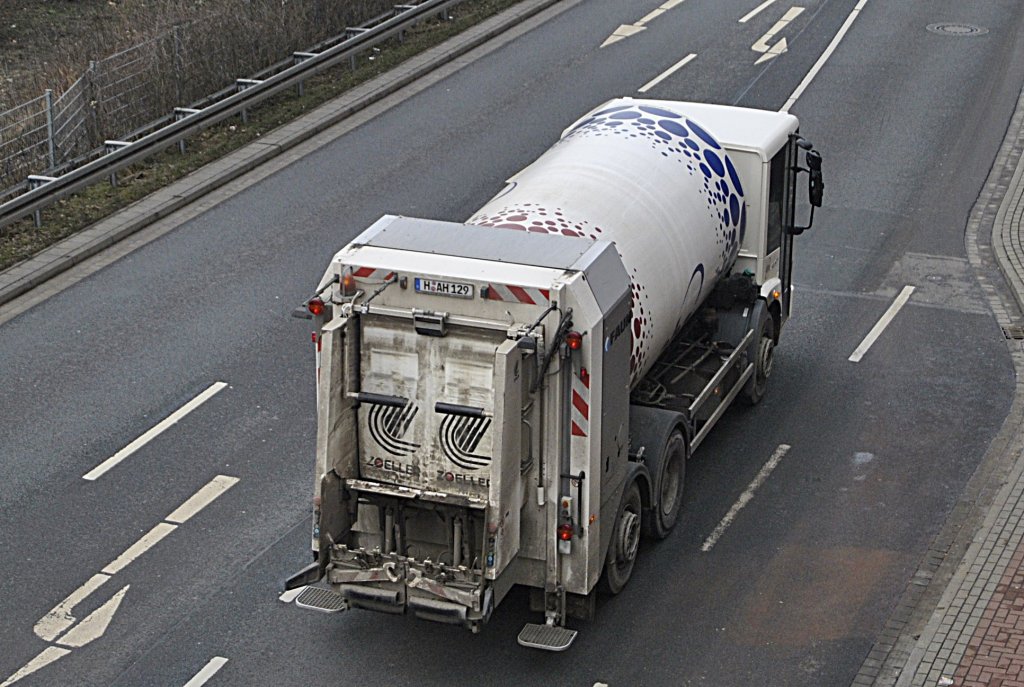 Dieser MAN-Entsorgungs-LKW stand am 09.Februar 2011 neben dem Fahrdienstleiterstellwerk in Bergen/Rügen.