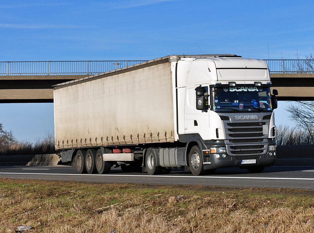 Scania R470 der Spedition Schumacher aus Würselen bei Aachen mit dem Aachen-Auflieger am 20.02.2011.