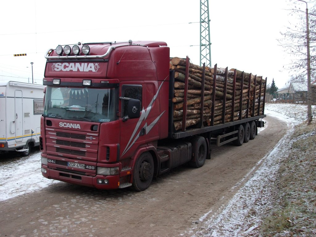 Seine Holzladung wurde dieser polnische SCANIA am 01.Februar 2011 am Bahnhof in Bergen/Rügen los.