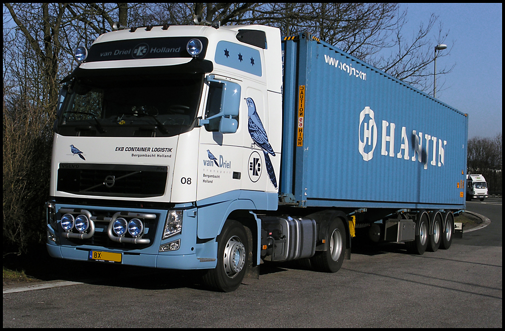21.02.2011: der Volvo FH - mit Container-Chassi der Sped. van Driel aus den Niederlanden -