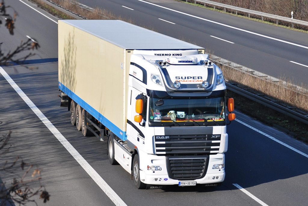 DAF FT XF 105 "R. v. Heur", Niederlande, auf der A61 bei Rheinbach - 17.02.2011