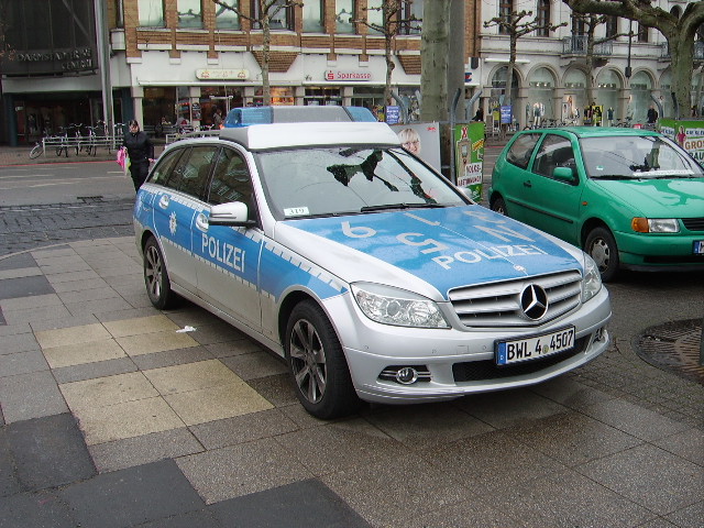 Ein Mercedes Benz C-Klasse Combi als Polizei Streifenwagen in Heidelberg am 24.02.11