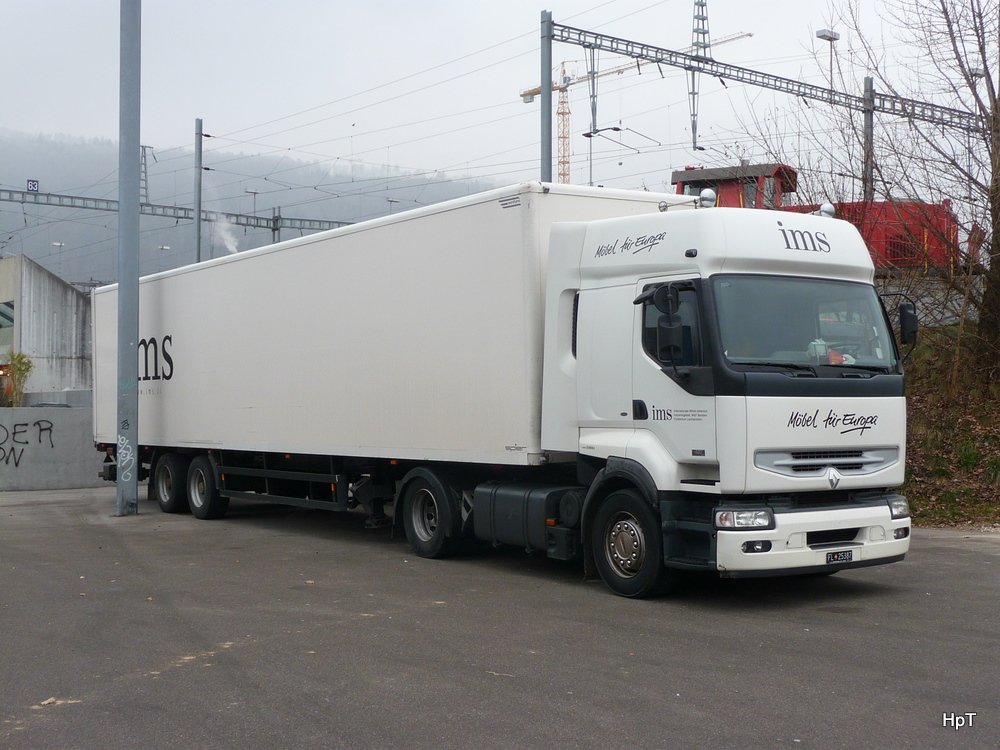 Renault 460 Pritsche "Neudeck Holzprodukte" auf der A61 bei Miel 17.02.2011