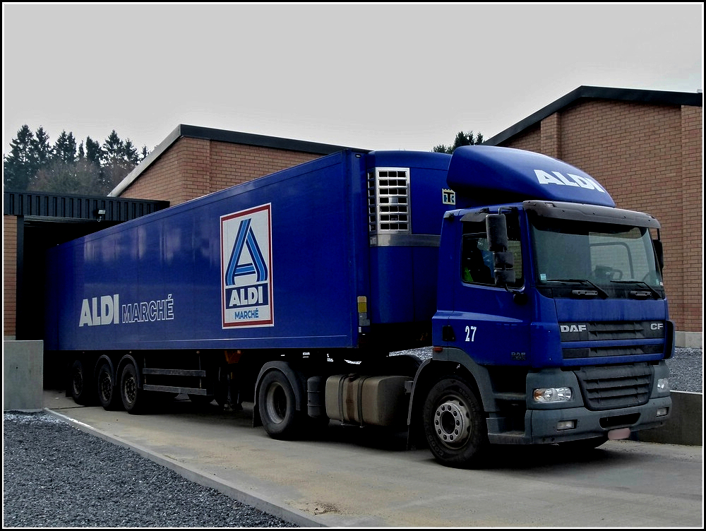 Mit diesem DAF Sattelzug wurden am 23.02.2011 mehrere Aldi Filialen im Norden luxemburgs neue Waren angeliefert.
