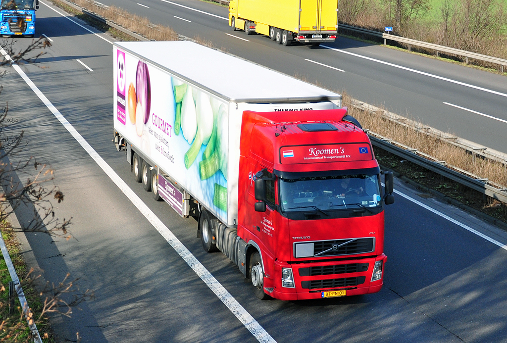 Volvo FH Kühlkoffer "Koomen`s", Niederlande, auf der A61 bei Rheinbach - 17.02.2011