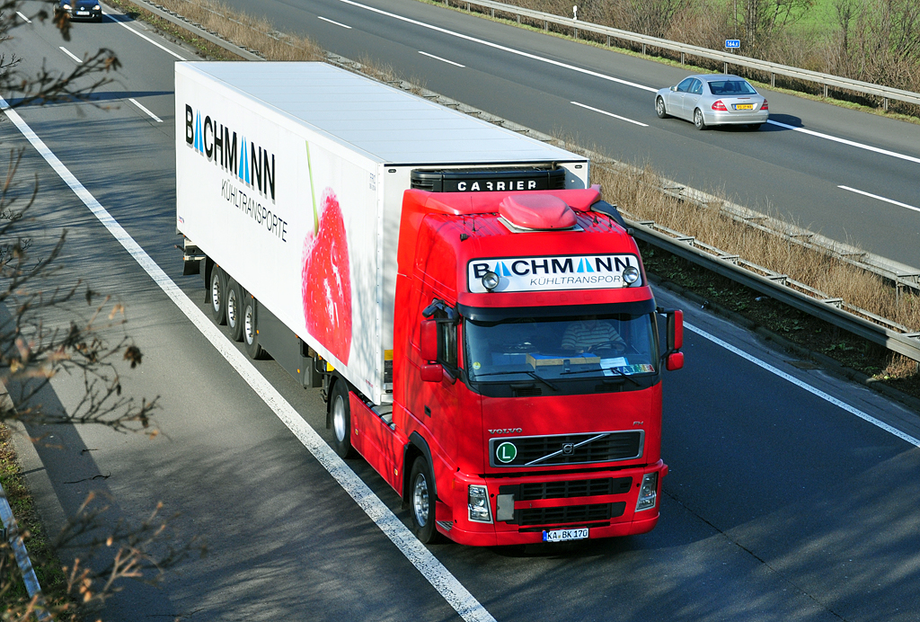 Volvo FH Kühlsattel "Bachmann-Kühltransporte" auf der A61 bei Rheinbach - 17.02.2011