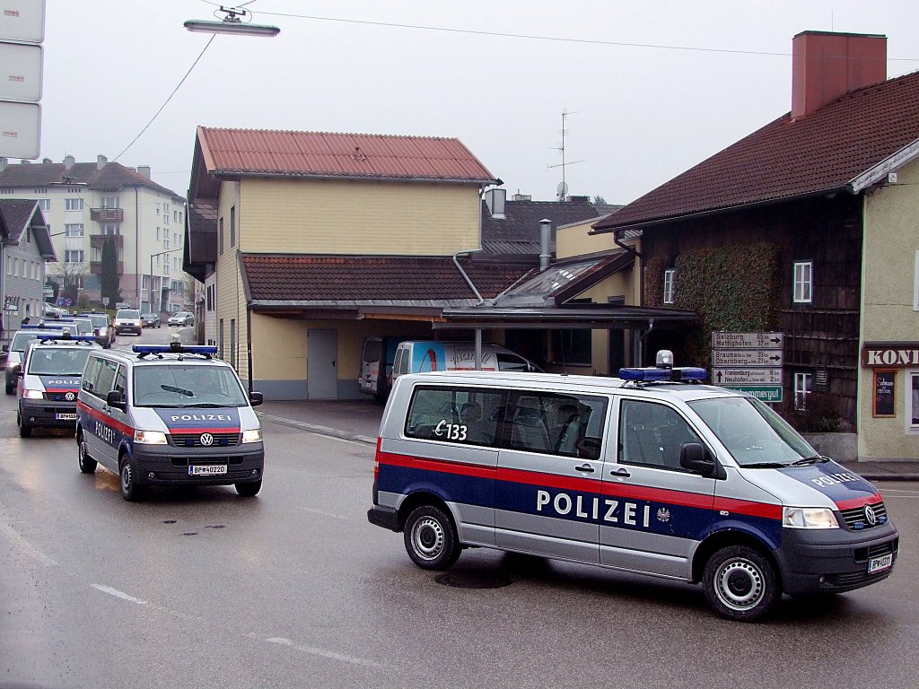 VW-T5 der Polizei in "3-facher Aufmachung" anlässlich des Fußballsttpiel SVR-Ried÷LASK-Linz;110219