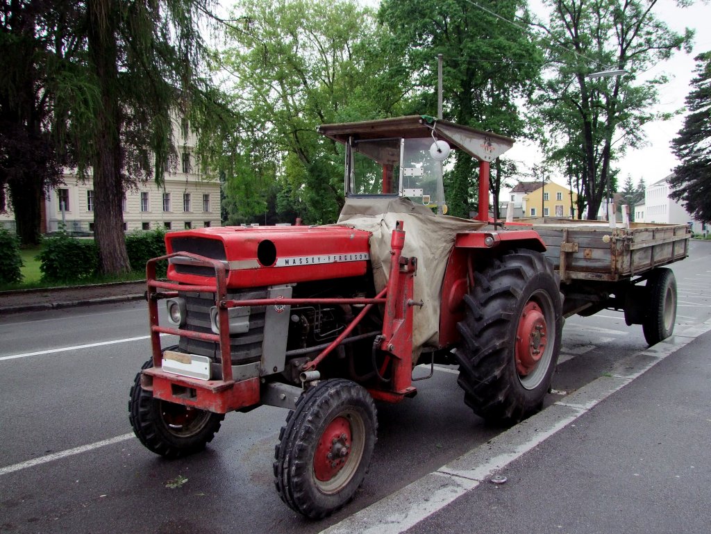 STEYR-768 zieht den mit Gerste beladenen Hänger Richtung Lagerhaus;110710
