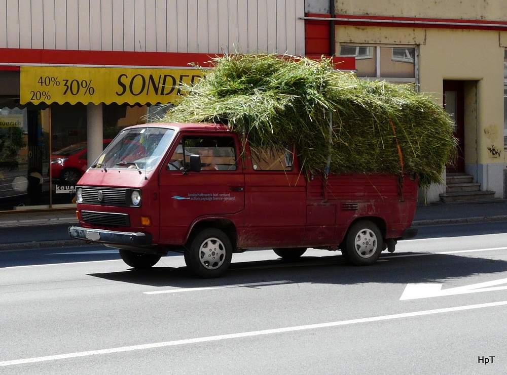 Überladener WV Transporter unterwegs in der Stadt Biel am 01.07.2011