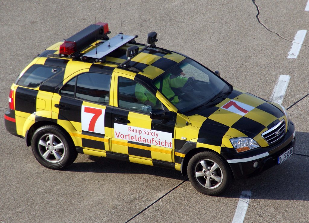 Mercedes Sprinter der Aiport Feuerwehr Hannover am 09.06.2011 am Flughafen untern Terminal C/Langenhagen. Der RTW, wird bei Notfällen eingesetzt wenn ein Fluggast aber Mitarbeiter sich in ungesunden Zustand befinden. Bei akuter Lebensgefahr fährt der RTW derieckt das nähste Krankenhaus an. Sonst wird ein RTW aus den Umland bestellt.