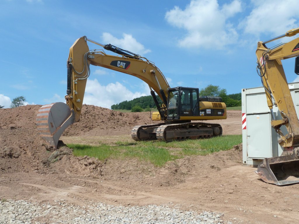 CAT 336D der Strassenbaufirma STOLZ steht auf einer Baustelle in Hilders, Mai 2011