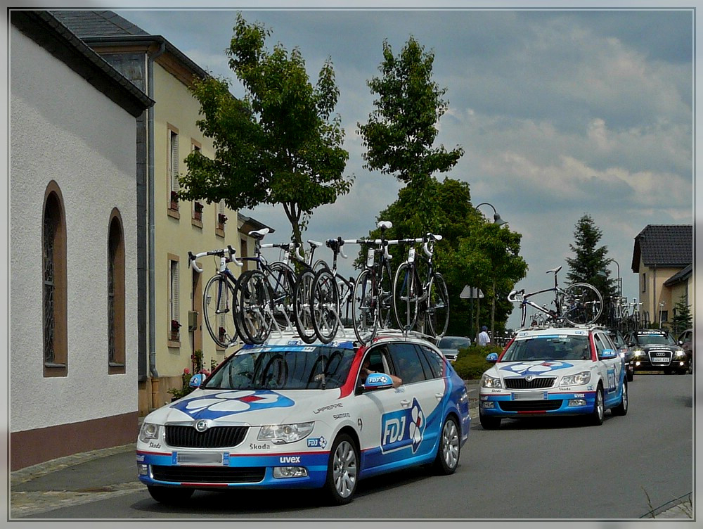 Ein Skoda Superb und ein Skoda Oktavia Mannschaftswagen von "FDJ" bei der "Skoda Tour de Luxembourg" aufgenommen am 04.06.2011.